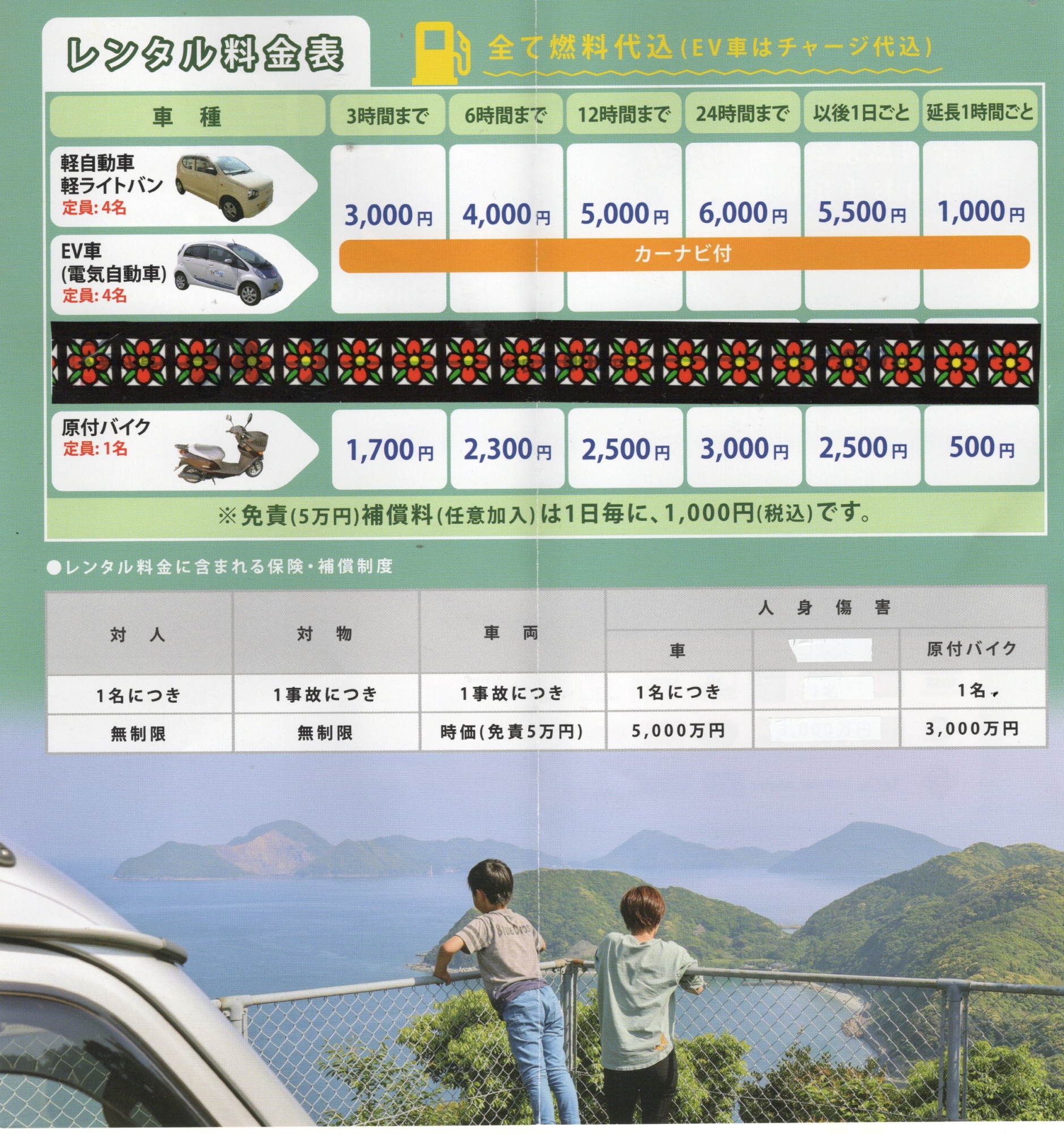 | 2018.04.01 | 奈留島港レンタカーでは、各種クレジットカード使えるようになりました。 |